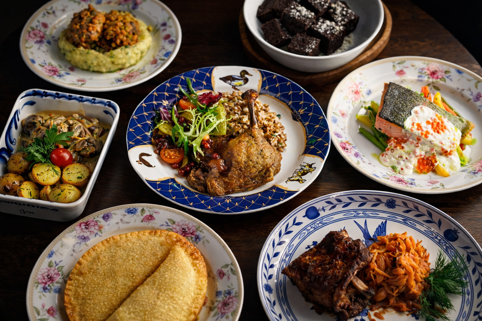 Здесь комфортно для неспешного ужина, деловой встречи и семейного праздника. Если вы ищете ресторан русской кухни в новом прочтении рядом с м. Добрынинская — вы по адресу. Забронируйте столик онлайн и попробуйте авторские интерпретации классики: тонкие блины с начинками, нежные супы, рыбу и мясо с фирменными соусами.